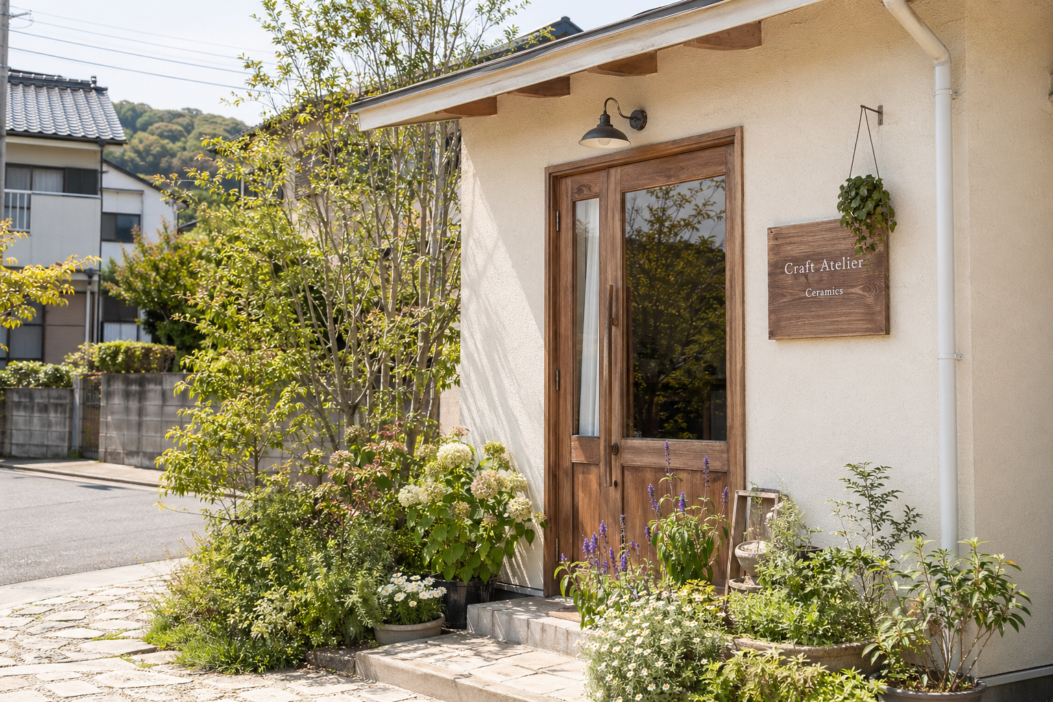 花と緑に囲まれた静かな住宅地の一角で、土づくりをゆったり楽しめる空間をご用意しています。ギャラリーも併設し、作品を見る時間も過ごせます。